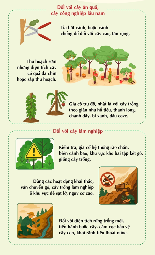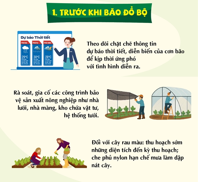 Để ứng phó với mưa bão, bà con nông dân cần thực hiện các biện pháp sau: